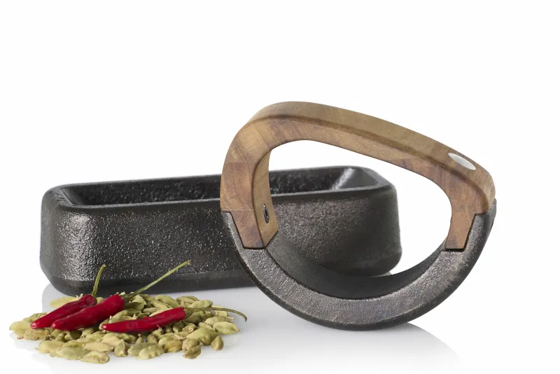 Produktinformationen „Wiegemörser Rocca, Gusseisen/Akazienholz, L 17 cm,“