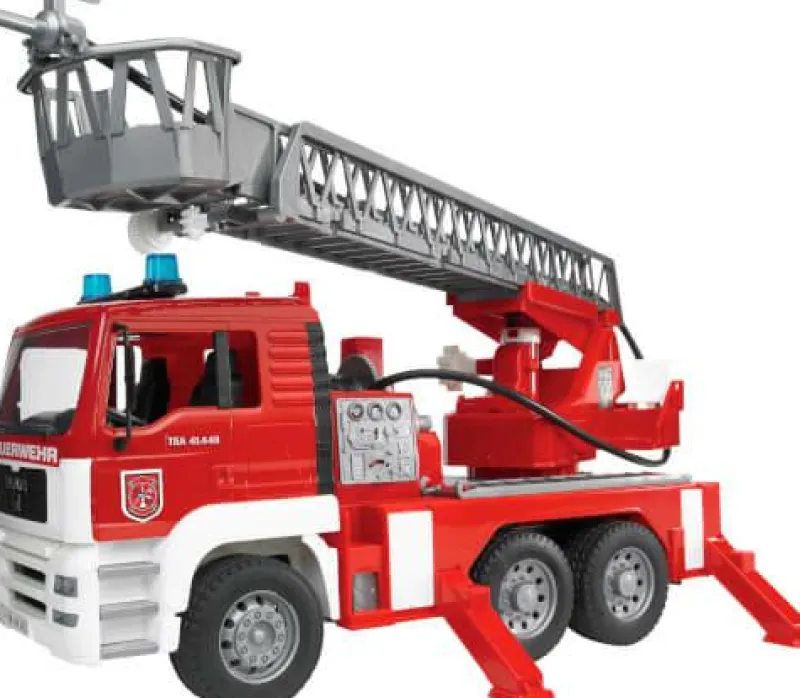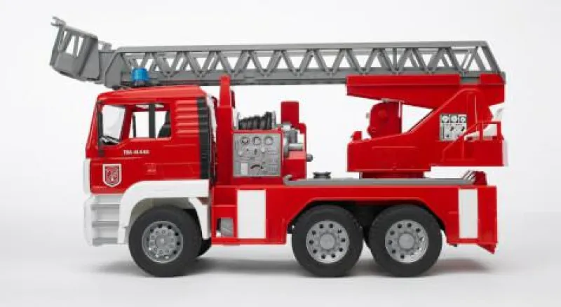 | Bezeichnung | Bruder 02771 MAN Feuerwehr mit Drehleiter, Licht und Sound, ab 3 Jahren, Maße: 47 x 24 x 17 cm |