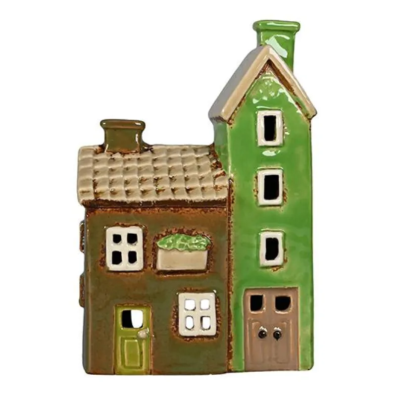 Det Gamle Apotek Kerzen, Leuchter Und Zubehör>Haus für Teelicht Keramik grün 24x11x7cm