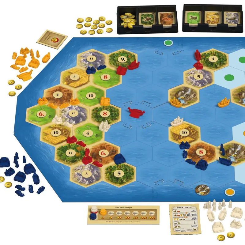 In der Erweiterung „Entdecker & Piraten“ nehmen Sie Abschied von der beschaulichen Insel Catan, auf der außer den lästigen Räuberbanden nur wenige Gefahren drohen. Ausgesandt vom Catanischen Rat brechen Sie in unbekannte Gefilde auf, um dort neue Stützpunkte zu errichten. Mutige Frauen und Männer sind bereit, ihr Glück in der Ferne zu suchen und schließen sich Ihnen als Siedler an. Doch Sie sind nicht nur Entdecker und Siedler – dem Catanischen Rat liegen verschiedene vage Informationen über das Archipel hinter dem Horizont vor. Daher können Sie unterschiedliche Missionen annehmen:
