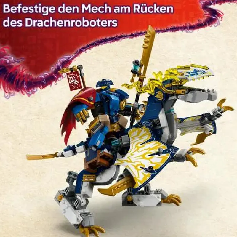 - Spielset mit Mech und Drachen: Kinder können mit dem Mech und dem allerersten NINJAGO Roboterdrachen spielen und die beiden Spielzeugfiguren dann zu Rogues Mech-Drachenreiter kombinieren