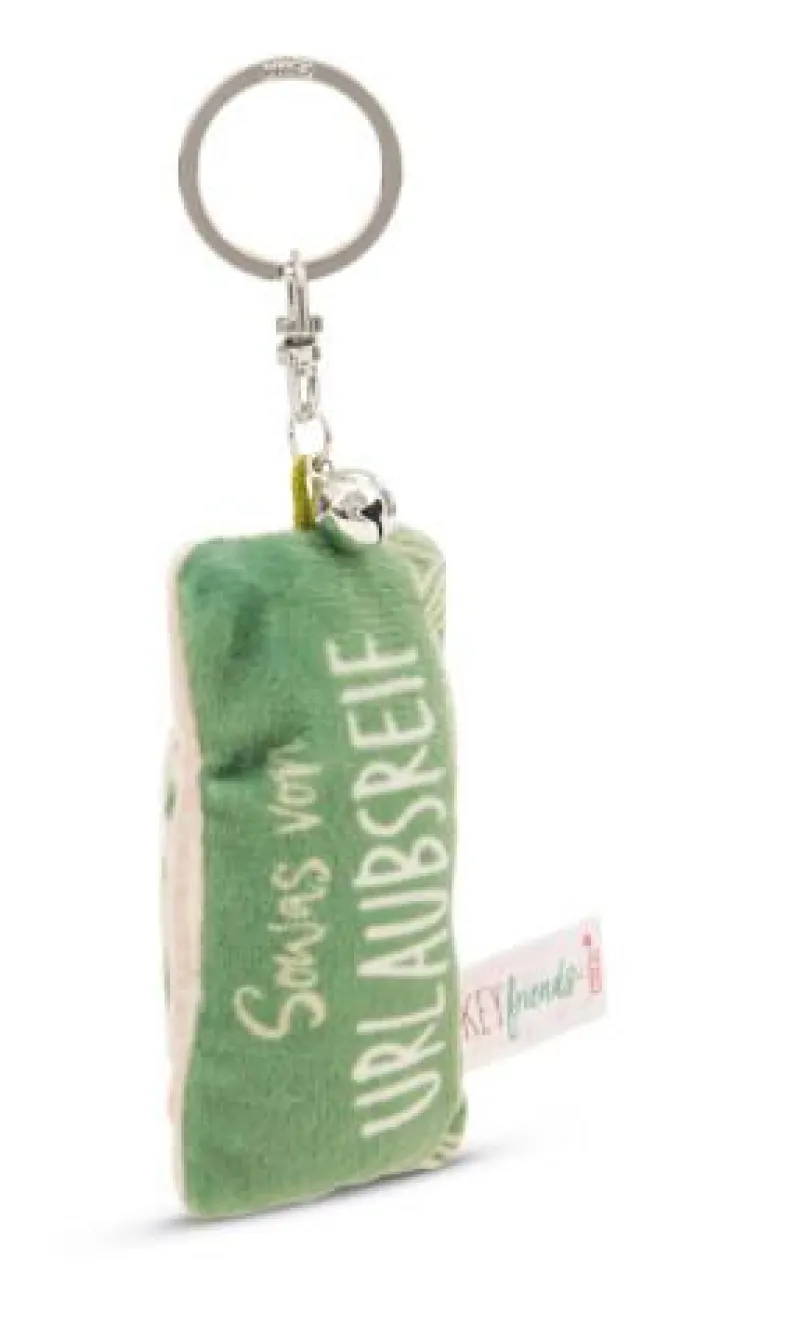| Bezeichnung | Schlüsselanhänger Mini Plüschkissen “Sowas von urlaubsreif“ m. Glöckchen |