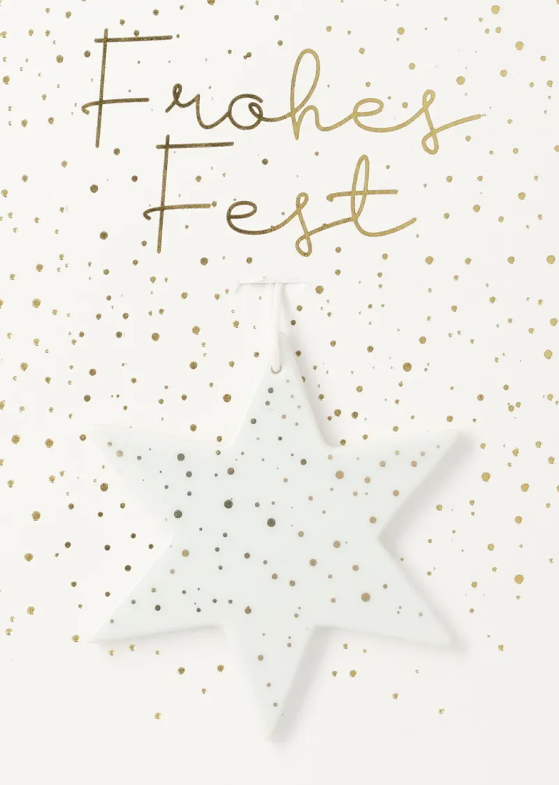 | Bezeichnung | Grußanhänger Frohes Fest,Stern 7,5×7,5cm |