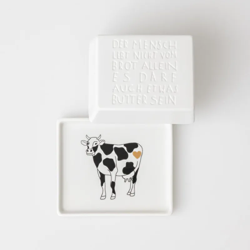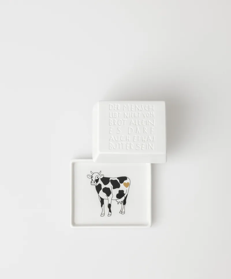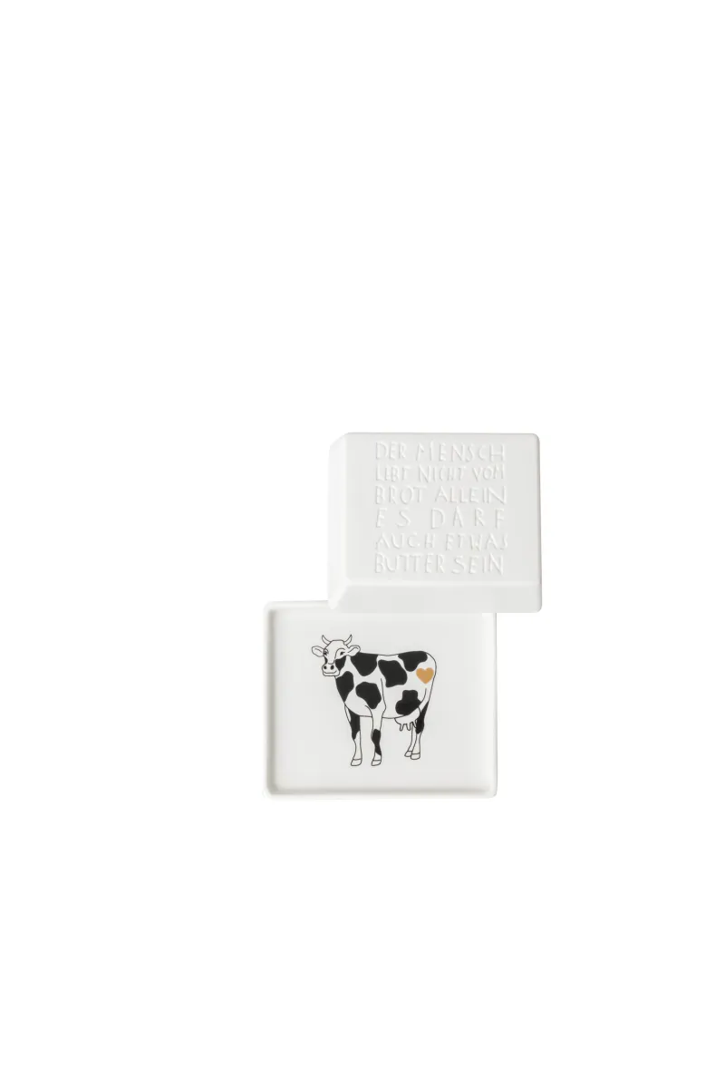 | Bezeichnung | Butterdose 1/4 Der Mensch lebt nicht 11×9,5×5,5cm |