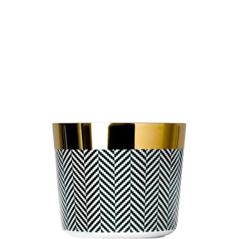 Die Farbenspiele in Gold, Weiß und Schwarz, ergänzt durch die detailreiche HERRINGBONE-Textur, verleihen dem Becher einen zeitlosen Charme. Entwickelt von den renommierten Designern Christian und Michael Sieger, manifestiert dieser Becher die Verbindung von Traditionsbewusstsein und individuellem, modernem Lebensstil.