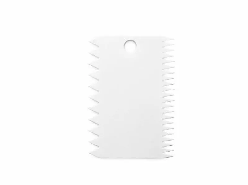 Mit diesem Kammschaber verzieren Sie Ihre Torte in zwei verschiedenen Mustern: fein- und grobgezackt.