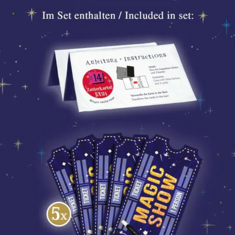| Bezeichnung | MAGIC SHOW Trick 14 Zauberkarten Etui Trick 14 von 18 ab 6 Jahren. |
