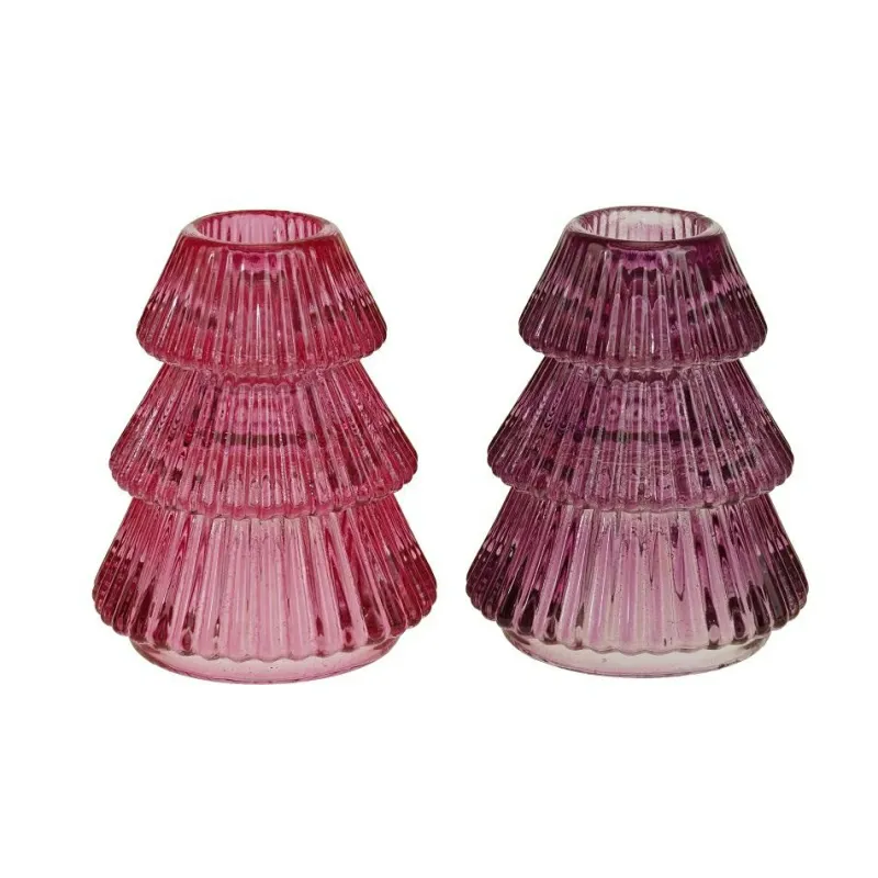 Produktinformationen „Kerzenhalter Tanne lila 2fach sortiert Glas 6,5x8c“