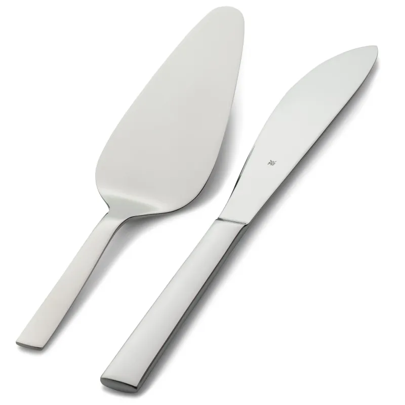 Dank seiner besonders feinen Zahnung schneidet das Nuova Tortenmesser jede Torte mühelos in akurate Stücke – egal ob opulente Sahnetorten, Schokoladentorte mit fester Glasur oder einfach einen köstlichen Obstkuchen. Und auch das Servieren klappt im Anschluss mit dem eleganten Nuova Tortenheber problemlos. Das 2-teilige Nuova Kuchenbesteck-Set wird in einer hochwertigen, illustrierten Faltschachtel geliefert, die auch als Geschenkverpackung eine gute Figur macht.Die Besteck-Kollektion Nuova von WMF umfasst nahezu 50 Spezialbesteckteile – von der Pastazange bis zum Honiglöffel, vom Fischbesteck bis zu zum Käsemesser. Zeitlos-schlicht designed, harmoniert Nuova nicht nur mit jedem Ambiente, sondern auch mit jedem anderen Besteck. Dabei liegen alle Besteckteile einfach perfekt in der Hand und überzeugen mit höchster Funktionalität im Alltag. Gefertigt aus hochwertigem Cromargan®: Edelstahl Rostfrei 18/10 ist Nuova selbstverständlich pflegeleicht spülmaschinenfest, völlig geschmacksneutral, sehr strapazierfähig und resistent gegen Speisesäuren.