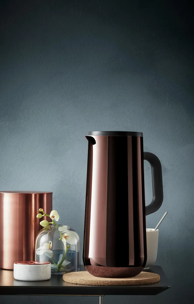 Ob aromatischer, heißer Kaffee zum täglichen Frühstück, oder Eiskaffee zur sommerlichen Abkühlung: Die Impulse Isolierkanne Kaffee in der Farbe Kupfer und mit 1 Liter Volumen hält dank doppelwandiger Therma-Pro-Isolierung Heißes für bis zu 12 Stunden warm und Kaltes bis zu 24 Stunden kalt – der hochwertige Glaskolben im Inneren ist dabei übrigens bei Bedarf kinderleicht zu wechseln. Zum Öffnen bzw. zum luftdichten und auslaufsicheren Schließen der Thermokanne aus hochwertigem Cromargan®: Edelstahl Rostfrei 18/10 genügt ein einfacher Druck auf den cleveren, automatischen Verschlussdeckel. Die Impulse Isolierkanne verbindet so preisgekröntes Design mit perfekter Funktion und fügt sich dazu harmonisch in jedes Ambiente ein.