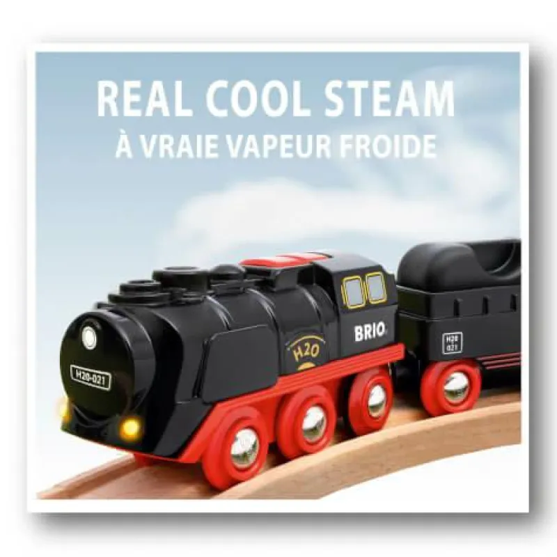 | Bezeichnung | BRIO World 33884 Batterie-Dampflok mit Wassertank – Lokomotive mit echtem kühlen Dampf und Wasserbehälter zum Nachfüllen |
