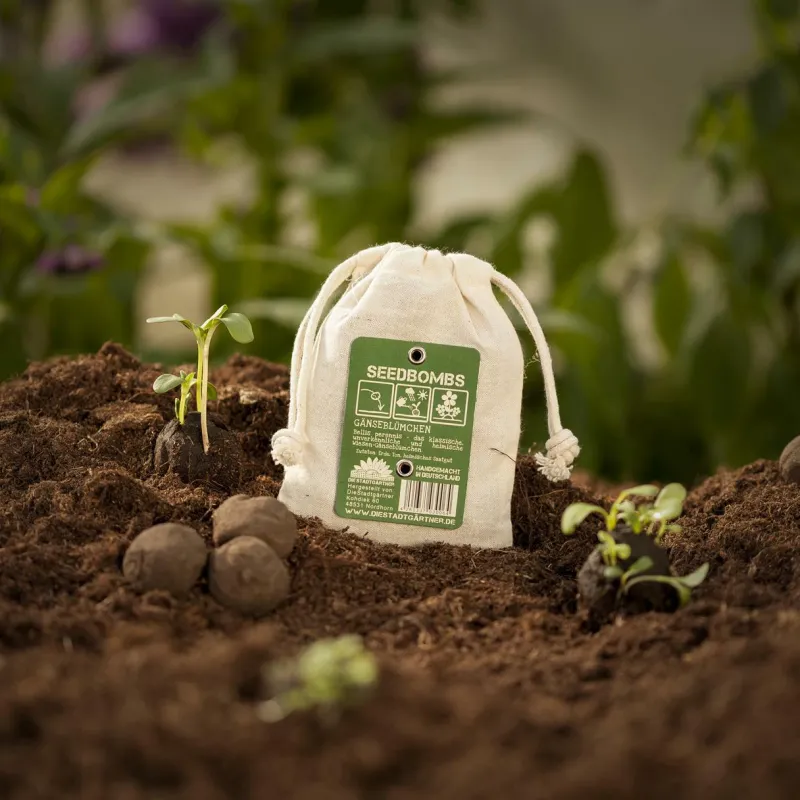 Produktinformationen „Gänseblümchen Samenbombe Jutebeutel“
