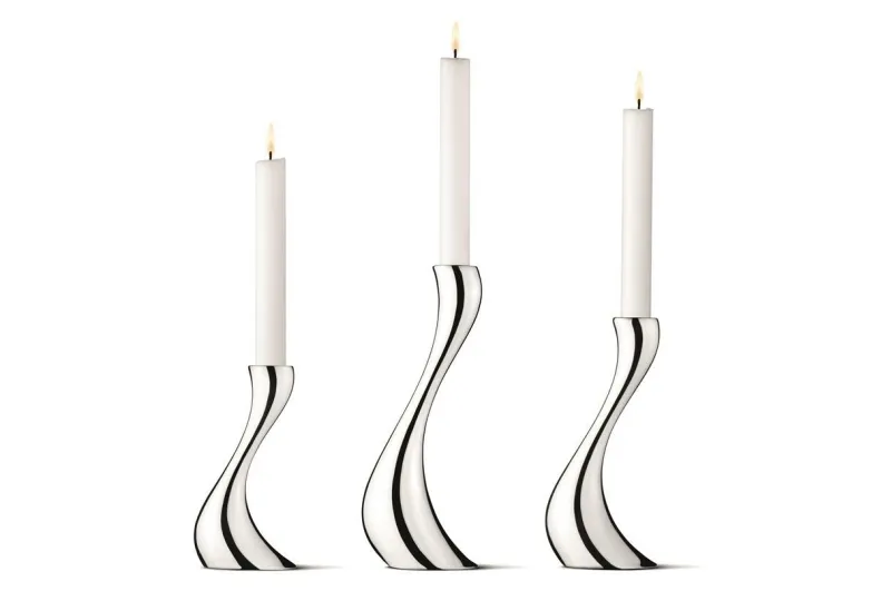 Das COBRA Kerzenhalter Set – klein, mittel und groß – formt eine natürliche Gruppe und ist aus hochglanzpoliertem Edelstahl gefertigt.