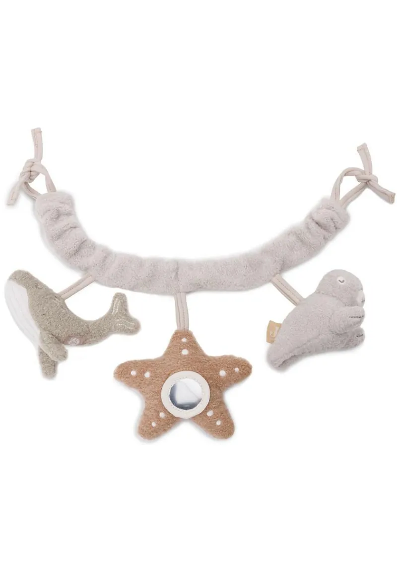 Kinderwagenketter mit Spiegel, Knisterstoff und verschiedenen Stoffarten
