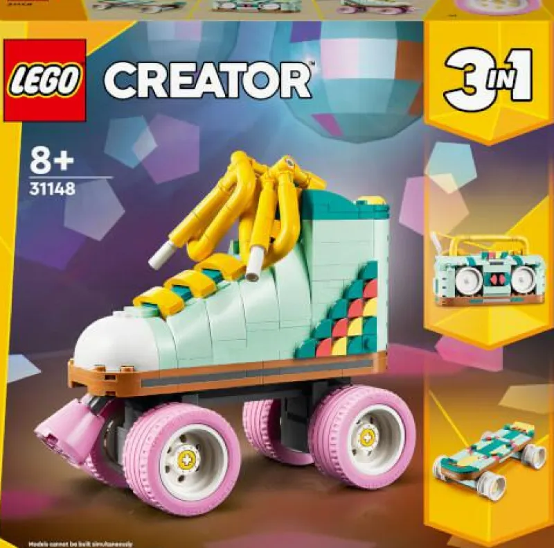 - 3 Retro-Modelle in 1 Box: Der LEGO Creator Rollschuh lässt Jungen und Mädchen ab 8 Jahren 3 verschiedene Ikonen der Popkultur aus denselben Teilen bauen und immer wieder umbauen