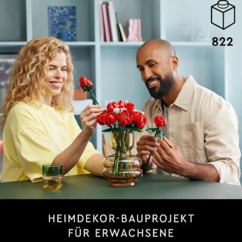 - Baubare Zimmer-Deko: Der LEGO Icons Rosenstrauß ist ein Set für Erwachsene und ein achtsames Bauprojekt, bei dem auch Freunde und Verwandte mitmachen können