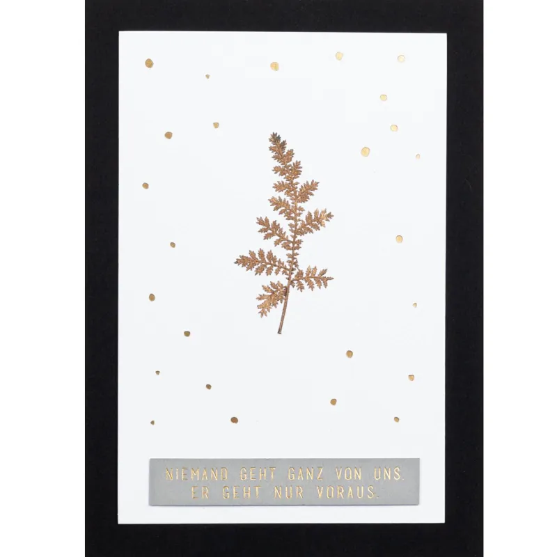 | Bezeichnung | Kondolenz Glanzblätterkarte Niemand geht ganz |