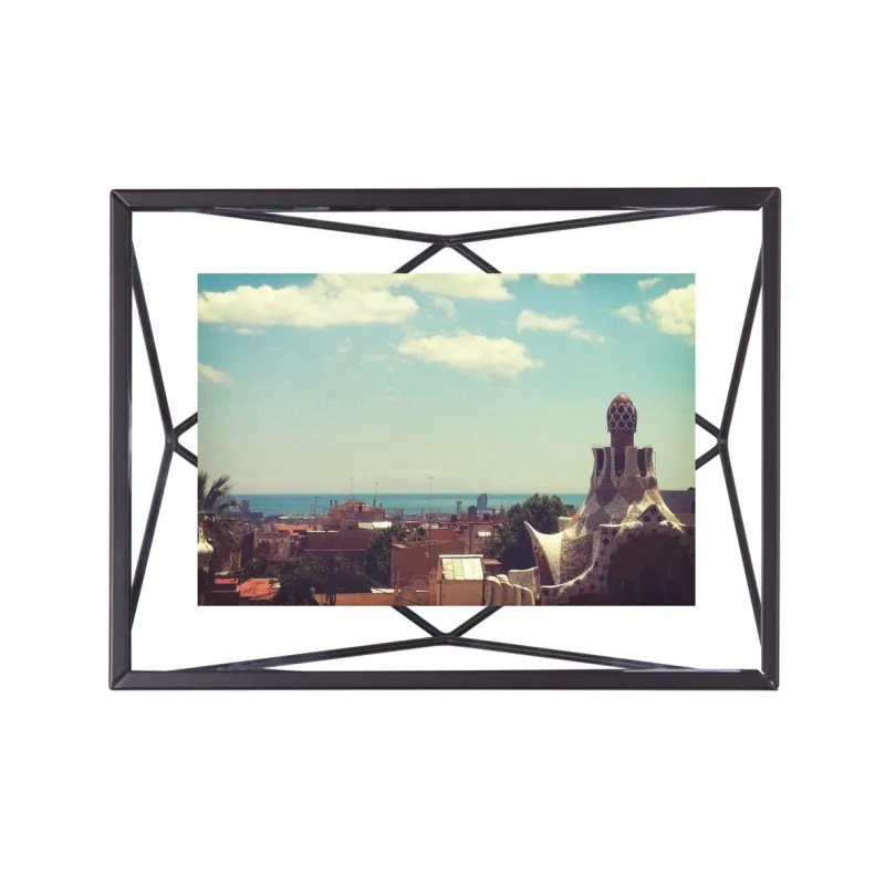 Prisma ist ein aussergewöhnlicher und zeitgenössischer Bilderrahmen mit geometrischem Design. Dabei lässt der Rahmen Fotos zwischen zwei Glasscheiben schweben, während die Drahtstruktur auf der Rückseite Prisma seine dreidimensionale Tiefe verleiht. Prisma kann sowohl horizontal als auch vertikal aufgehängt oder aufgestellt werden.