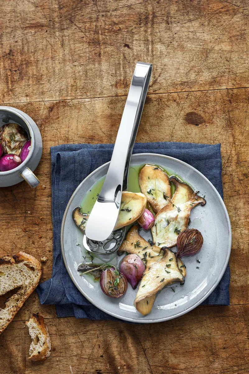 Alles Gewünschte aufgreifen und Überflüssiges einfach abtropfen lassen: kein Problem mit der Nuova Servierzange mit Abtropfschlitzen. Während Fleisch, Gemüse, Beilagen oder auch Salat genau portioniert auf dem Teller landen, laufen Marinaden, Fett und Wasser einfach durch die untere Laffe ab. Die clever aus einem Stück gefertigte Küchenzange ist natürlich auch zum Einsatz als Grillzange geeignet. Die Nuova Servierzange wird in einer hochwertigen, illustrierten Faltschachtel geliefert, die auch als Geschenkverpackung eine gute Figur macht. Die Besteck-Kollektion Nuova von WMF umfasst nahezu 50 Spezialbesteckteile – von der Pastazange bis zum Honiglöffel, vom Fischbesteck bis zu zum Käsemesser. Zeitlos-schlicht designed, harmoniert Nuova nicht nur mit jedem Ambiente, sondern auch mit jedem anderen Besteck. Dabei liegen alle Besteckteile einfach perfekt in der Hand und überzeugen mit höchster Funktionalität im Alltag. Gefertigt aus hochwertigem Cromargan®: Edelstahl Rostfrei 18/10 ist Nuova selbstverständlich pflegeleicht spülmaschinenfest, völlig geschmacksneutral, sehr strapazierfähig und resistent gegen Speisesäuren.